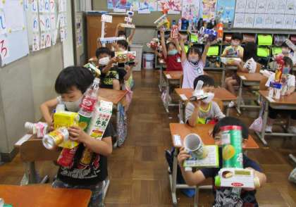 先週に続き,図画工作科「はこでつくったよ」の学習をしました。「箱を半分に切って使ってみよう!」「もっと頑丈にするにはどうすればいいだろう?」と,試行錯誤しながら作品を仕上げることができました。アイデア盛りだくさんの素敵な作品が完成しましたね!