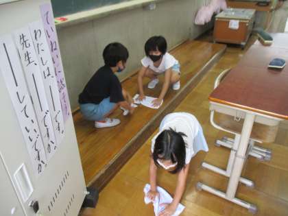 暑さに負けず,掃除ももくもくとがんばっています。