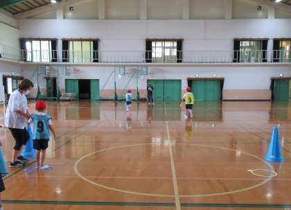 わっかリレー,風船運びリレー,ボール運びリレーなどです。友だちからバトンを受け取って,走り切ることができました。