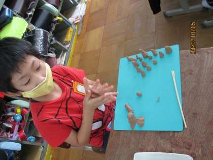 粘土をつかって,楽しかったことやがんばったことなどの思い出をかたちにしていきました。テーマは広く,お家での習い事や出来事を表現している子どもたちがたくさんいました。