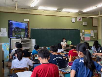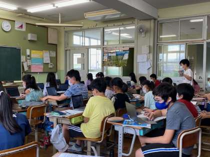 自分が調べたことを大型テレビに映して,みんなで交流しました。