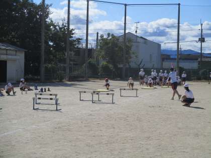 障害物競走の練習中です。みんな一生懸命です。