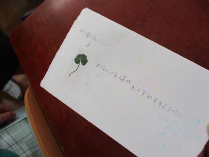 お誕生日会をしました。お誕生日係のメッセージカードのプレゼント(今回は四葉のクローバーがついていました!)やゲームをして仲良く遊びました。これからも自分たちでどんどん企画をして学級を盛り上げてほしいです!