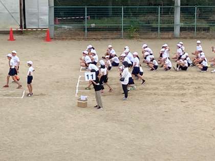 本日(10/12)は5・1・3年生の「体育科学習発表会」を実施しています。どの学年でも個人走・障害物走があり,各種目・各学年30レースくらいあります。