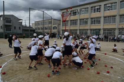 玉入れです。どのクラスも,練習の時よりもたくさん入れることができました!すばらしかったです!!!
