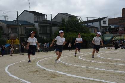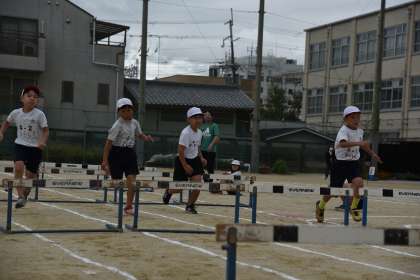 4年生は「体操」「80M走」「40Mハードル」「協力玉入れ」