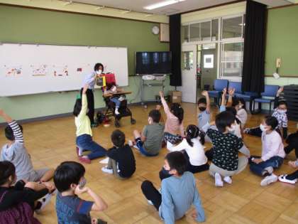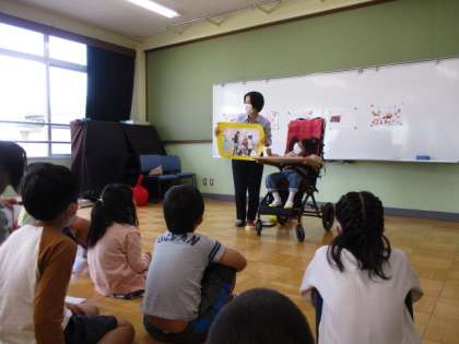 はじめは自己紹介クイズです。今,支援学校で育てている野菜や,好きな曲,英語の授業のことなどを聞かせてもらいました。