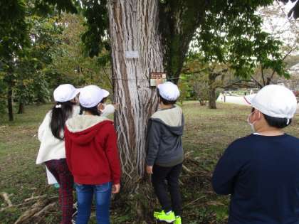 植物園内では,ウォークラリーをしました。地図を見て3か所のポイントを探しながら,園内を散策しました。