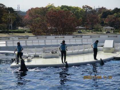 子どもたちが一番楽しみにしていたイルカショー。当日までイルカの体調が心配でしたが,とても元気いっぱいの姿を見ることができました。