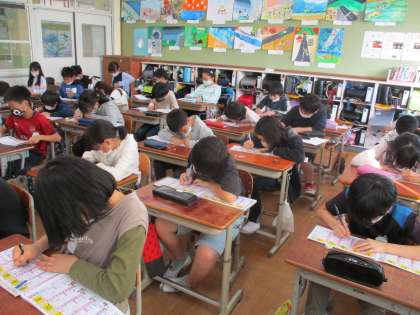 11月にも関わらず暑くて扇風機をつけました。それでもしっかり集中して学習に取り組む子どもたち…尊敬します。朝晩の気温差に注意!