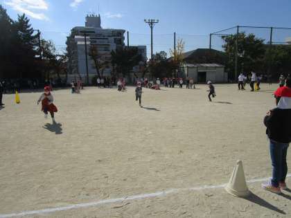 運動委員会の取組で,中間休みにクラス対抗のリレーを行いました。全員リレーは初めてでしたが,全クラス最後までバトンをつなぎました。1位は2組でした!おめでとう!!
