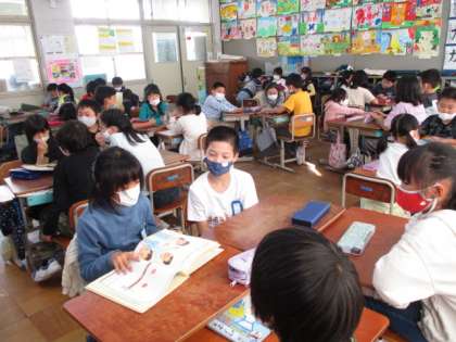 グループに分かれて,読み聞かせの本を選び,練習をしました。