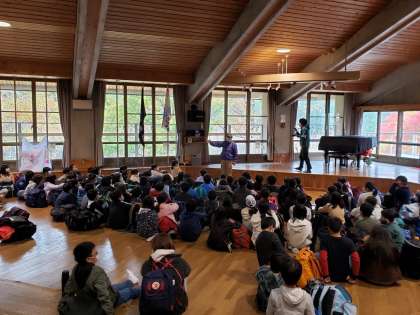 5年・宿泊学習"花背山の家"1日目 山の家に到着「入所式」