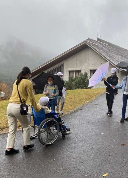 雨にも負けず,坂にも負けず・・・グループで協力して,みんながんばっています。