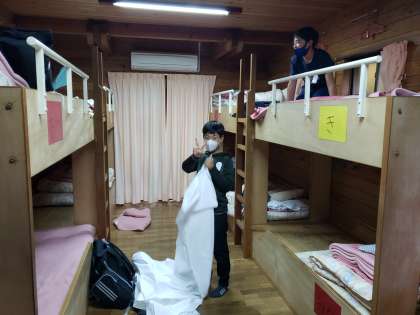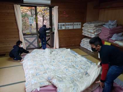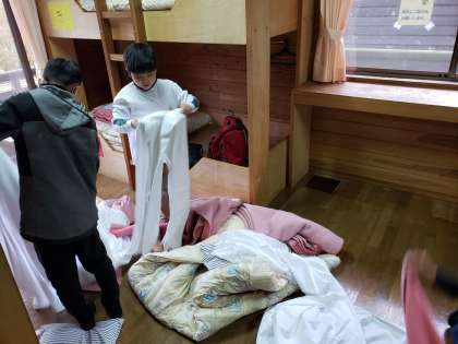 ゆっくり過ごした後は,荷物を整理したり寝床の準備をしたりしています。結構,苦戦しているようです。
