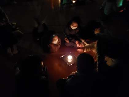 グループでひとつのキャンドルを囲んで、語りあっています。