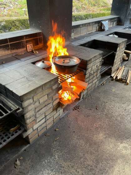 かまどにまきをくべて…ファイヤー!(ちょっと燃えすぎ…?(笑))