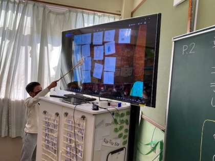 ここでは教科書だけでなく,デジタル教科書も用いて,学習しています。