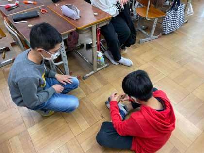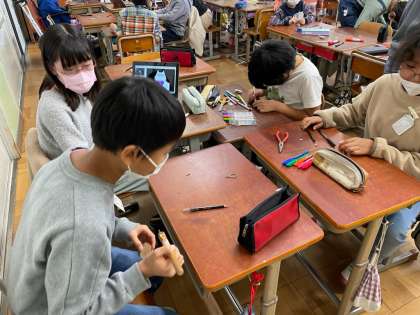 花背山の家で雨が降った時に行う予定だったウッドキーホルダー作りをしました。