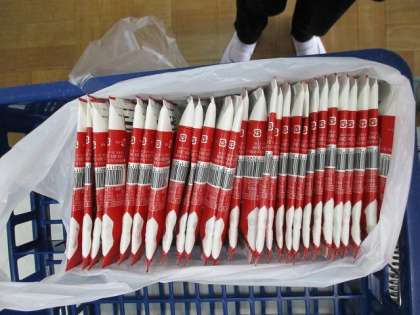 クラスで飲み終わった牛乳パックをきれいに並べて入れることを意識しています。