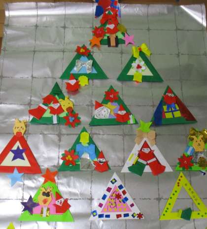 一人ひとりの飾りを合わせると,大きなツリーになりました。