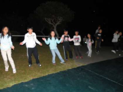 キャンプファイヤーでは、「進化ゲーム」やフォークダンスをして楽しみました。みんなの顔が笑顔であふれ思い出に残る温かいキャンプファイヤーとなりました。