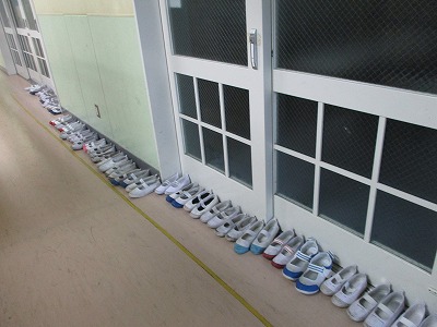 廊下にきれいに並んだ上靴も,素敵ですね。