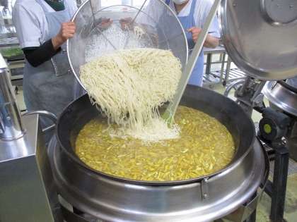 うどんも,子どもたちが食べる頃においしくなるよう,うどんの状態を何度も確認しながらゆでていきます。