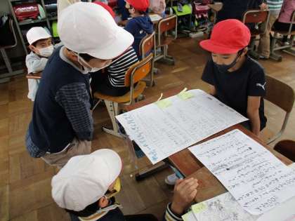 子どもたちが作ったパンフレット,ポスターや新聞などは,各グループで工夫をしていました。色づかいやデザインもすてきでした!