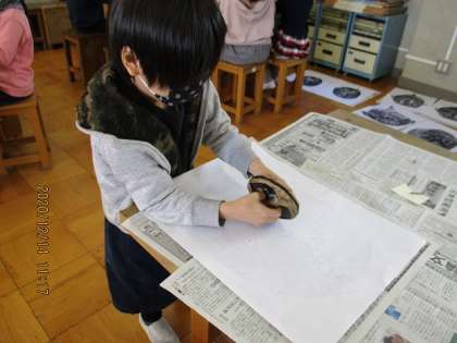 今日もすてきな版画ができあがりました。長い間順番待ちをしていた子どもたちは,とても楽しみにしていましたね!