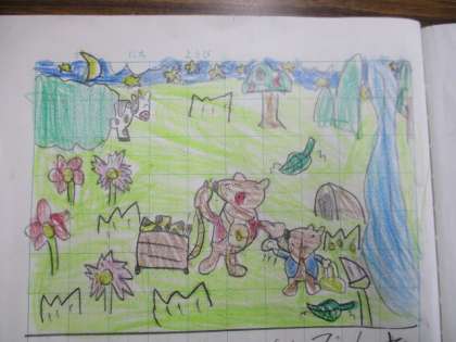 かわいらしい登場人物や背景など,子どもたちの世界観はすごいものです。