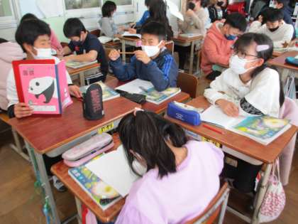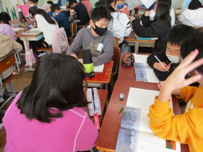 国語で冬の言葉集めをしました。言葉を使って冬の良いところを文にしました。