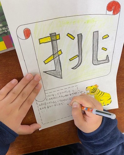 3学期,こんな自分になりたいということを漢字1文字で表してもらいました。