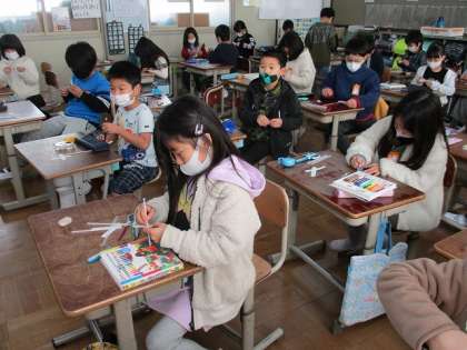 子どもたちは一つ一つの説明を真剣に聴き,一生懸命に作り始めました。1本作り上げると,2本目,3本目とスムーズに完成することができましたね!