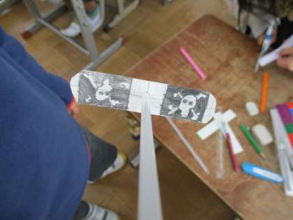デザインも個性があり,とてもすてきでした。紙とんぼに書かれたデザインは,宙に浮かぶとおもしろかったですね。