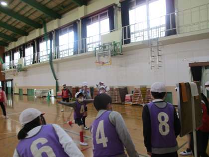 やればやるほど上達しています。得意な人が苦手な人にたくさんパスを出す姿,出ていなくても指示や応援をする姿,相手チームでもほめあう姿,良い感じ。