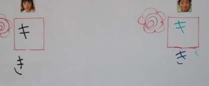 カタカナの「キ」を書くと,三画目の線がしっかり斜めに書けていました。
