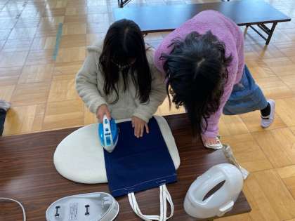 家庭科では,初めてのミシンやアイロンを使って,トートバッグを作りました。