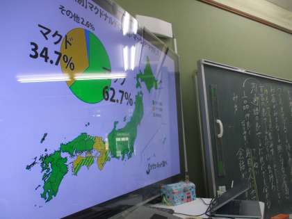 方言の学習をしました。ある地方では「あまい」は「薄い」という意味で使われるそうです。方言の良さと共通語の良さを考えました。みなさんは,マクド?マック?