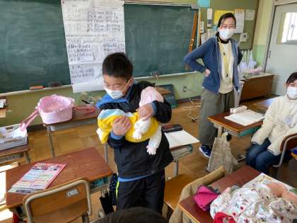 終始,嬉しくてキャーキャー言ってましたが,危なっかしい抱き方をする子もいれば上手にあやす子もいたりして大盛り上がりでした。