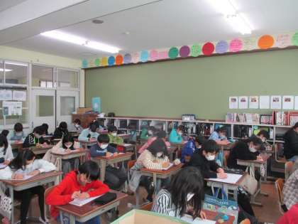 一生懸命自主勉強をしています。学年末の漢字五十問テスト,難易度は高いです。
