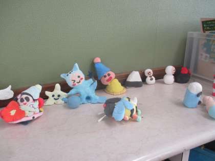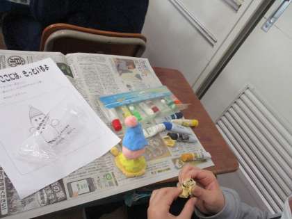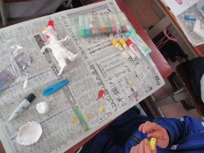 図画工作科では紙粘土であちらこちらに住む住人を作り,撮影会をします。