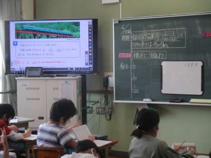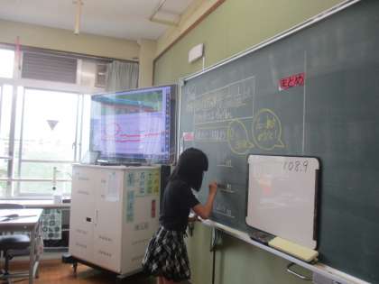 今日は,10分の1,100分の1にしたときの小数点の移り方を考えました。“位が下がるので,左にいくと思います”と自分の言葉で説明していました。上手に説明していましたね!