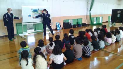 伏見警察署の警官から交通安全について教えてもらいました。安全を意識し,実践することができました。この学びを普段の生活に活かしてほしいなを思います。どんなことを学んできたのか,ぜひご自宅でもお話してみてください♪