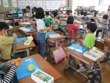 図画工作科の学習で,ねん土をにぎってできるものを作りました。