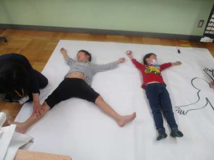 体を自分の好きな色で彩色したり,切り紙を貼ったりして