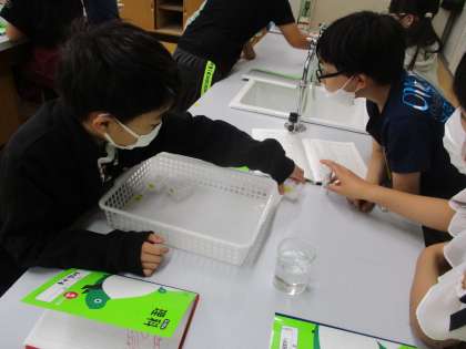 理科「植物の発芽と成長」の学習をしています。「植物が発芽するには,何が必要なのか」と学習問題を,条件制御という実験方法を用いて実験していきます。GW明けに出る実験結果が楽しみです。