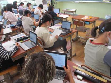 社会科で「わたしたちの国土」の学習をしています。今日は「日本の国土はどのように広がり,他国とどのように関わっているのだろうか。」という学習問題を立て,日本の特色や領土,また領土をめぐる問題について調べ学習をしました。教科書を読んだり,タブレットを使用したりしながら一生懸命調べる姿が見られました。