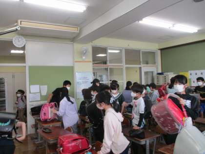 緊急下校の避難訓練をしました。「自宅下校」なのか「学校待機」なのか,自分でも覚えておきましょう。