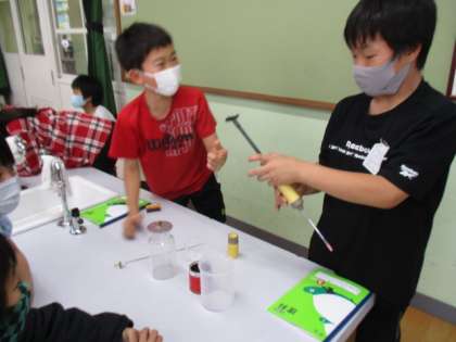 理科の学習では毎時間実験をしています。グループのみんなで協力して頑張っています!
